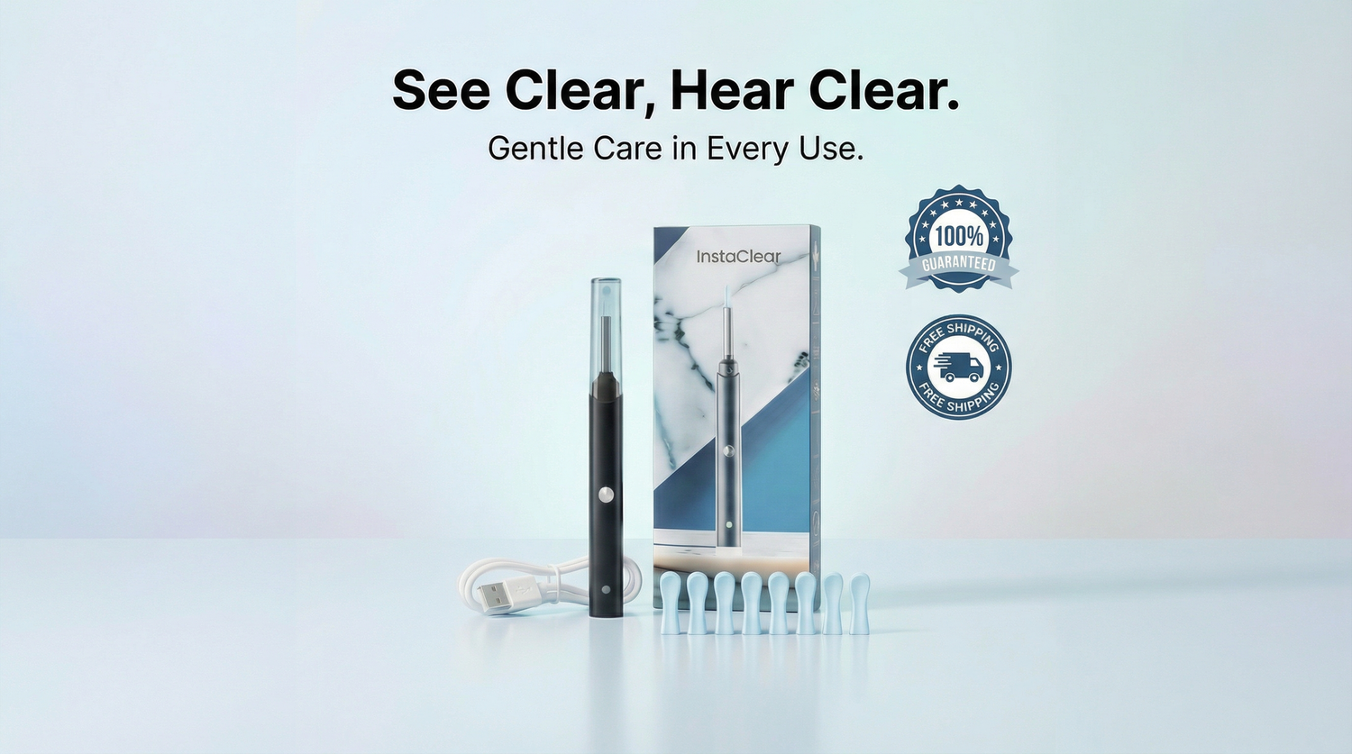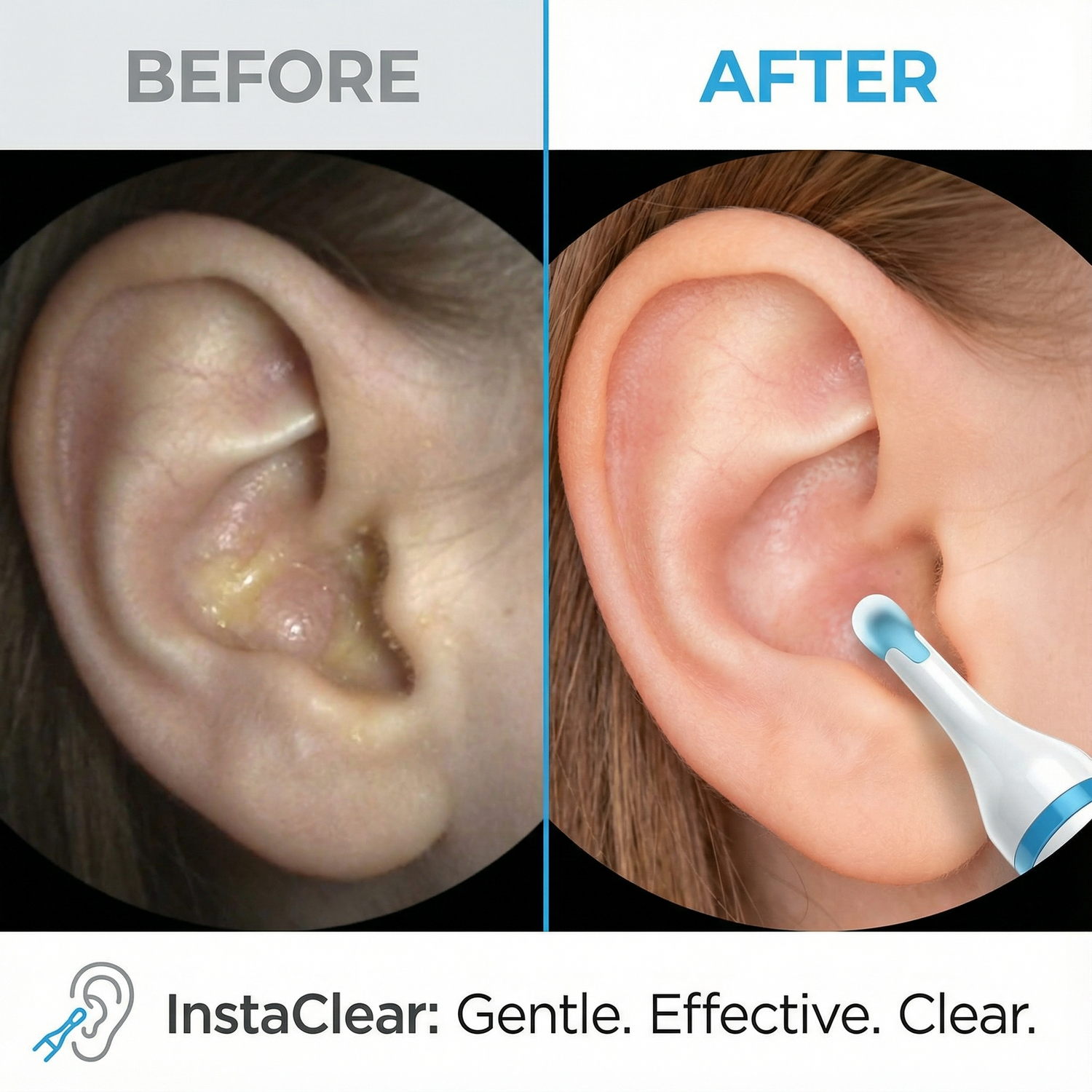 The InstaClear™ HD camera reveals every detail of your ear canal in real-time — so you can target wax buildup with precision, avoid your eardrum completely, and know exactly when your ears are perfectly clean.